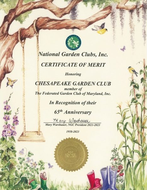 The Chesapeake Garden Club (CGC) began in 1958 and became an official part of the Maryland Federated Garden Clubs in 1960. For over 60 years, CGC has been an integral part of the Calvert County community.